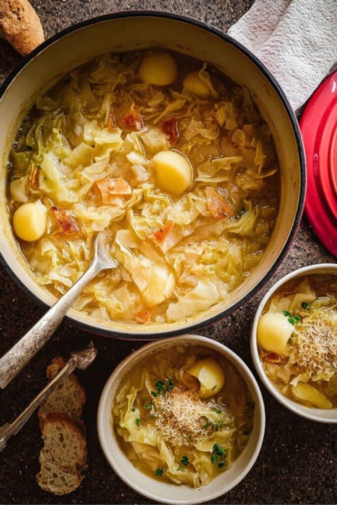 Together, they create a bowl that feels hearty without being heavy. If you switch to vegetable broth and keep toppings light, Cabbage and Potato Soup can sit comfortably in a balanced weekly menu.