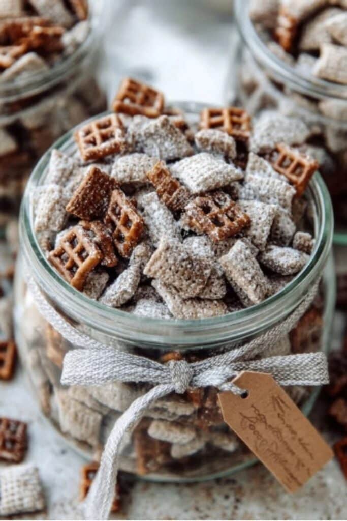 For gifting ideas, portion Chex Mix Puppy Chow into mason jars or treat bags tied with ribbon. It’s an excellent DIY holiday gift, especially when paired with cookies and cream puppy chow or a savory mix like cheesy ranch Chex mix.