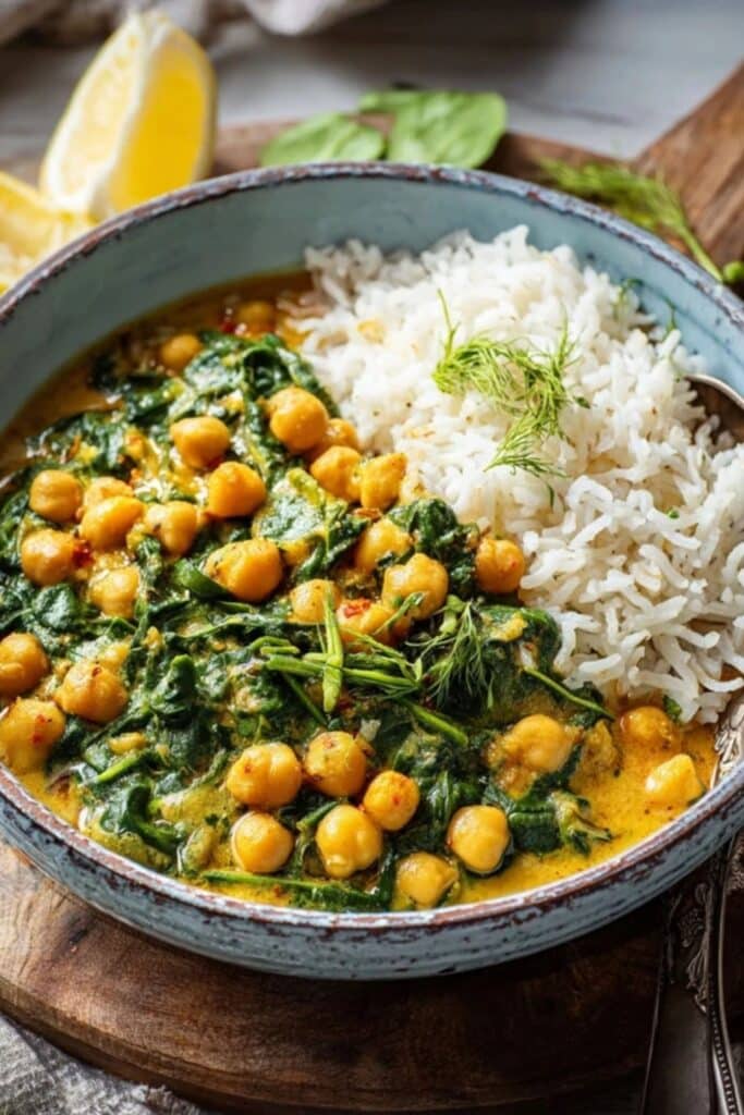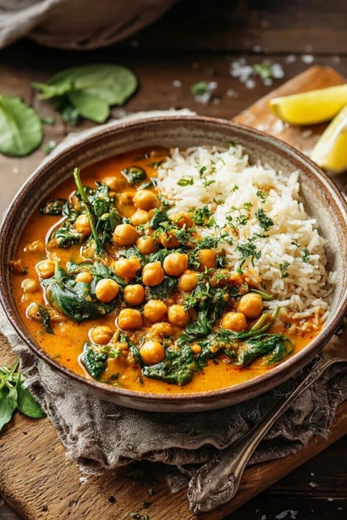Yes. Chickpeas offer plant-based protein and fiber, while spinach adds iron and other essential nutrients. Tomatoes contribute vitamin C, which helps your body absorb that iron, and you can adjust the coconut milk to control richness. Overall, chickpea and spinach curry gives you a filling, nutrient-dense dinner in one bowl.