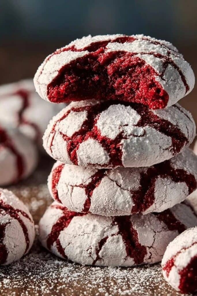 When I first thought of merging the two, it was a bit of an experiment. But the results? A cookie thatโs fudgy in the center, crisp at the edges, and beautifully crinkled on the outside. The dramatic red hue peeking through powdered sugar gives these cookies a signature look, while the rich cocoa flavor and moist crumb seal the deal.