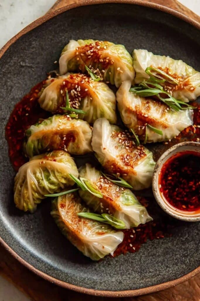 Yes, you can assemble the rolls, place them seam-side down in a pan, and refrigerate them for up to 24 hours. When youโre ready to serve, you steam them, mix a fresh batch of chili oil, and drizzle it on just before plating. This keeps the cabbage juicy and the chili oil fragrant.