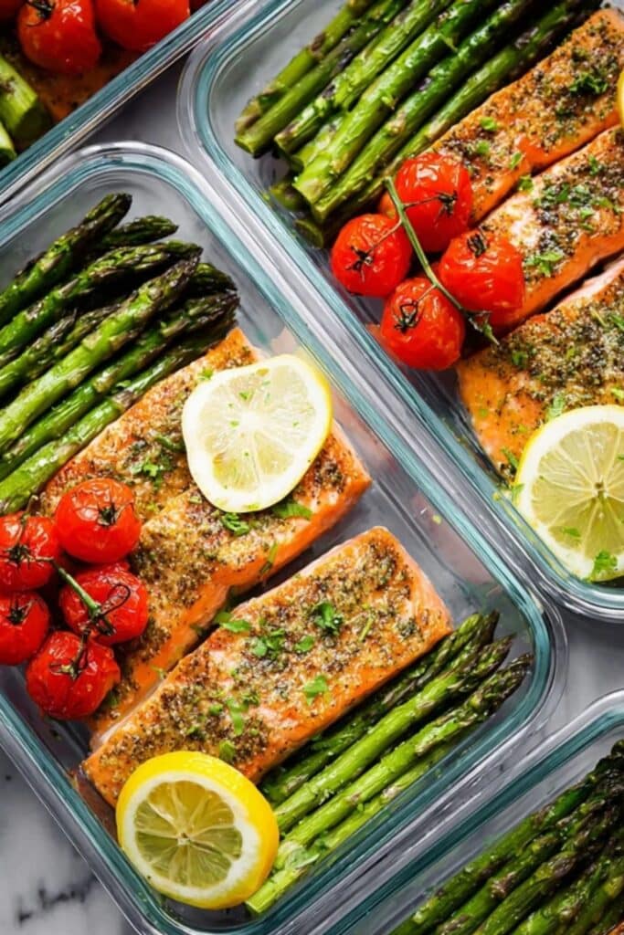 Use shallow containers or meal prep trays to separate portions and prevent sogginess. Avoid stacking the asparagus directly under the salmon to keep its texture intact. If you plan to freeze the meal, consider undercooking the salmon by a minute or two so it doesnโt dry out when reheated.